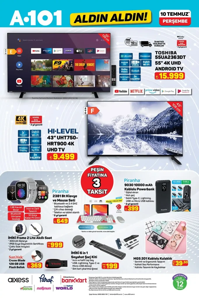 A101 10 Temmuz 2025 aktüel ürünler kataloğu nihayet açıklandı! Elektronikten mutfak eşyalarına, bebek ürünlerinden kişisel bakım cihazlarına kadar her ihtiyaca uygun yüzlerce ürün bu hafta A101 raflarında yerini alıyor. Sınırlı sayıda gelen fırsat ürünleri, uygun fiyatları ve peşin fiyatına 3 taksit avantajı ile dikkat çekiyor.