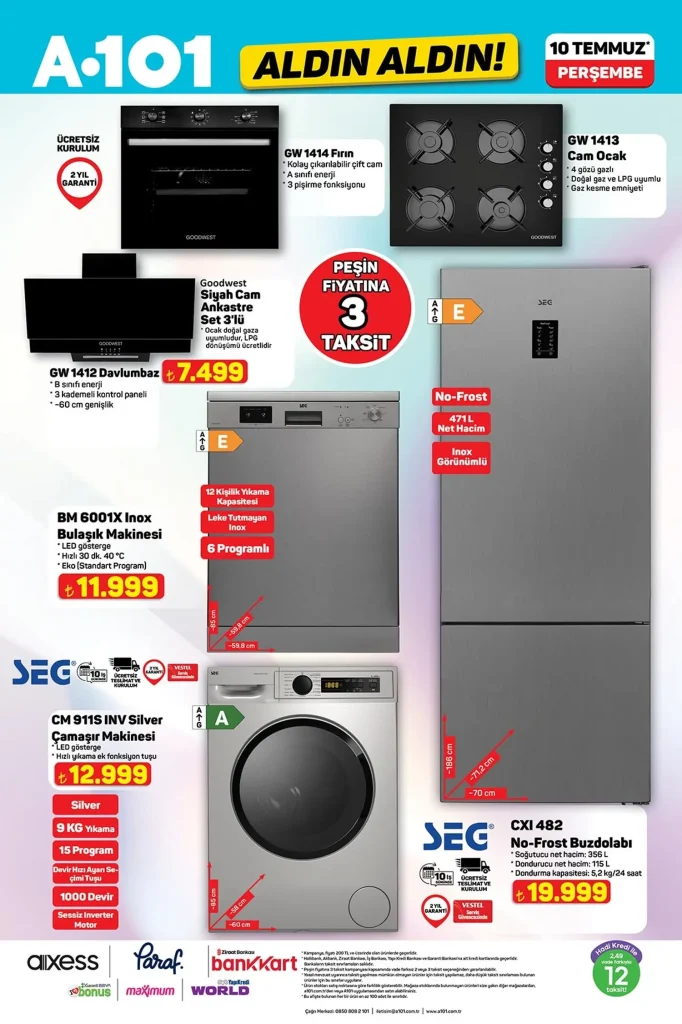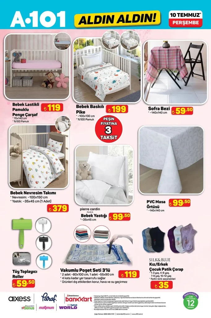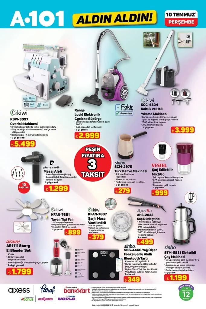 A101 10 Temmuz 2025 aktüel ürünler kataloğu, 6 Ağustos’a kadar geçerli olacak. Üstelik birçok ürün peşin fiyatına 3 taksit seçeneği ile sunuluyor. İndirimli ürünleri kaçırmamak için A101 şubelerine erkenden uğrayın!