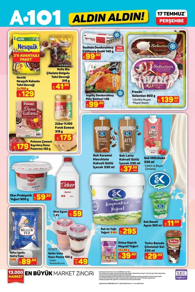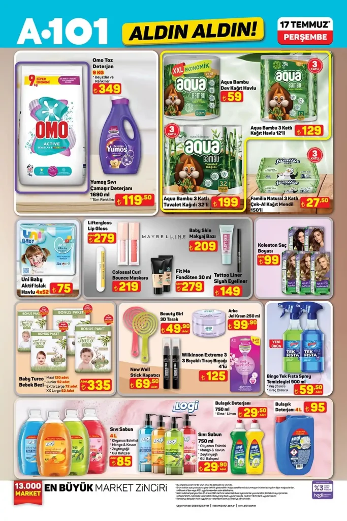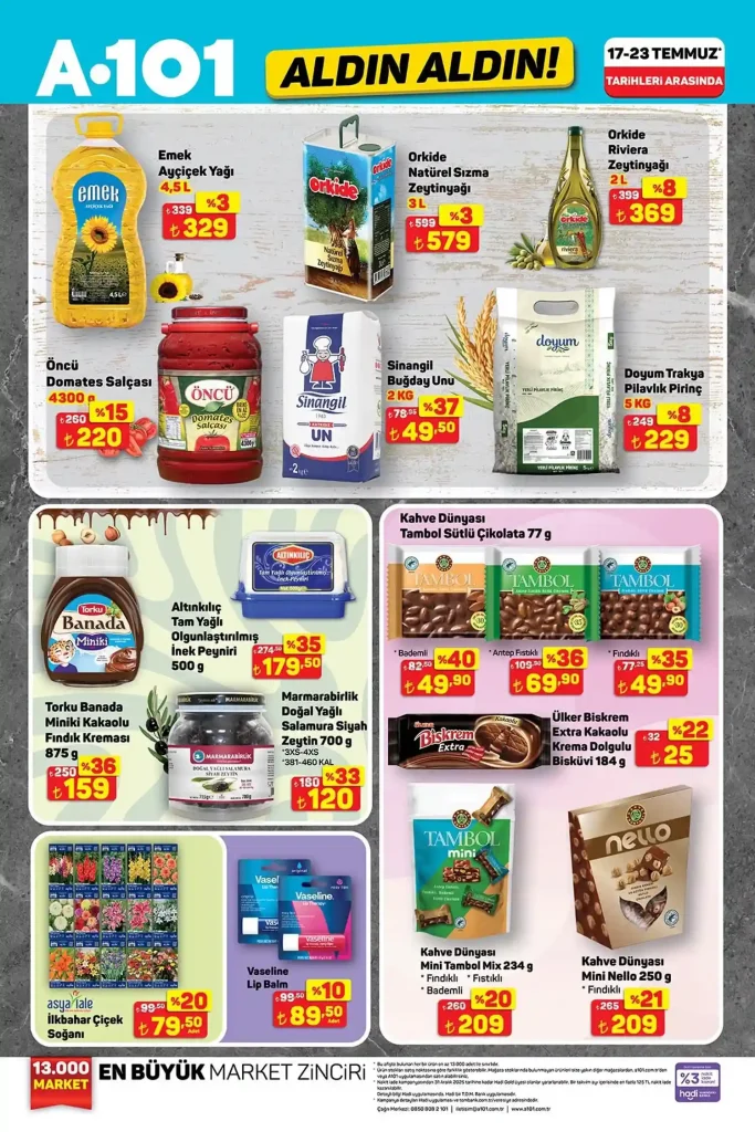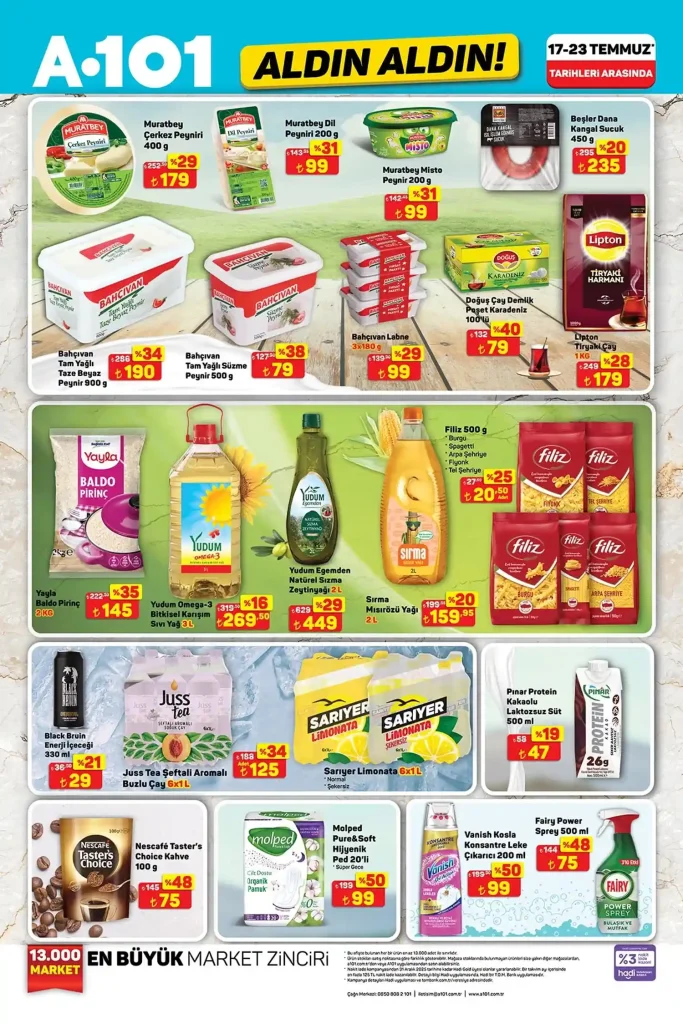 A101 17 Temmuz 2025 Aktüel Kataloğu nihayet açıklandı! Bu haftanın merakla beklenen A101 indirimleri, birbirinden cazip fırsatlar ve “Aldın Aldın” kampanyalarıyla alışveriş severleri bekliyor. İşte tüm detaylar: