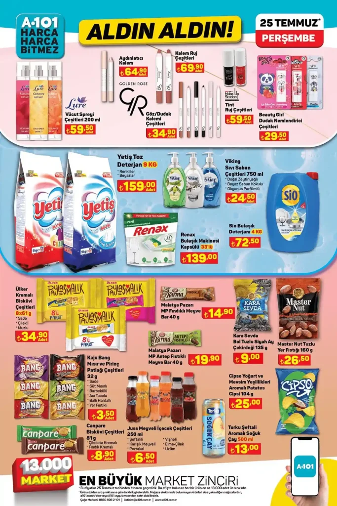 A101 25 Temmuz 2024 kataloglarında müthiş indirimler var. A101 Aktüel katalogları yepyeni görünümüyle ve indirim listeleriyle haftaya bomba etkisi yaratıyor. Tüm ürünlerinde etkili fırsatlar sunacak olan A101’im bu hafta Perşembe indirimleri inanılmaz. Erken demeyin, şimdiden A101’i keşfedin. Başlıyoruz: