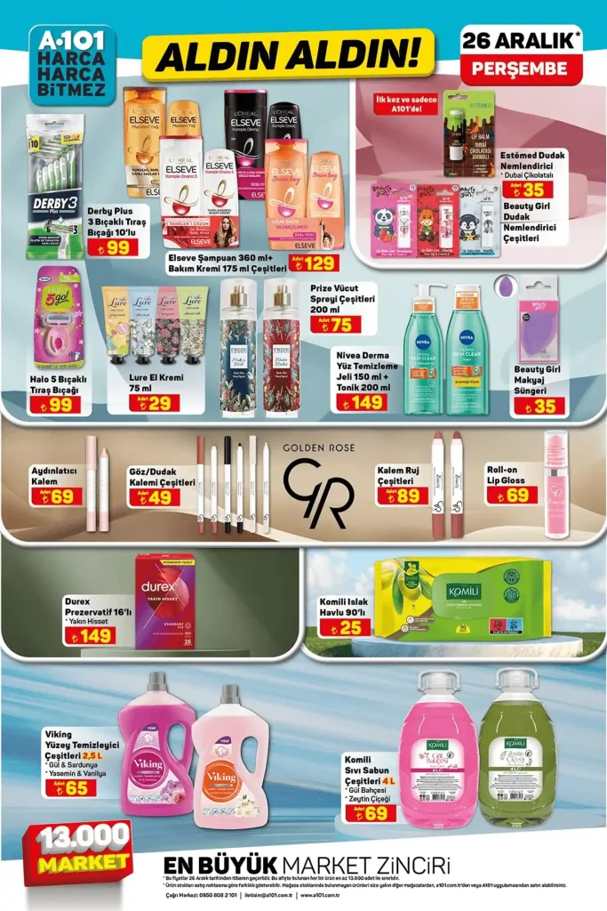 Bu fırsat dolu katalogda yer alan ürünlerin detaylarını A101.com.tr adresinden veya mağazalardan inceleyebilirsiniz. A101, yılın son kampanyasında bol kazanç ve mutlu bir yeni yıl diler! 🎉