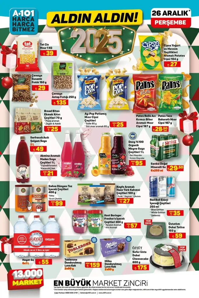- Cips, Çikolata ve Gazlı/Gazsız İçecekler: Yılbaşı sofralarına özel indirimler.