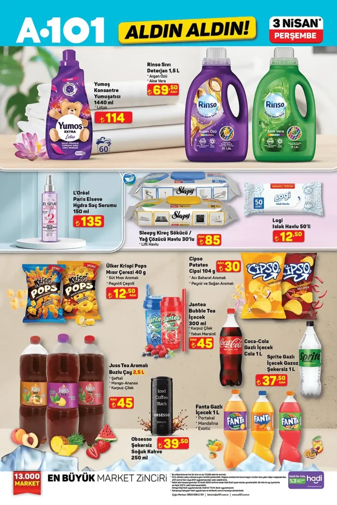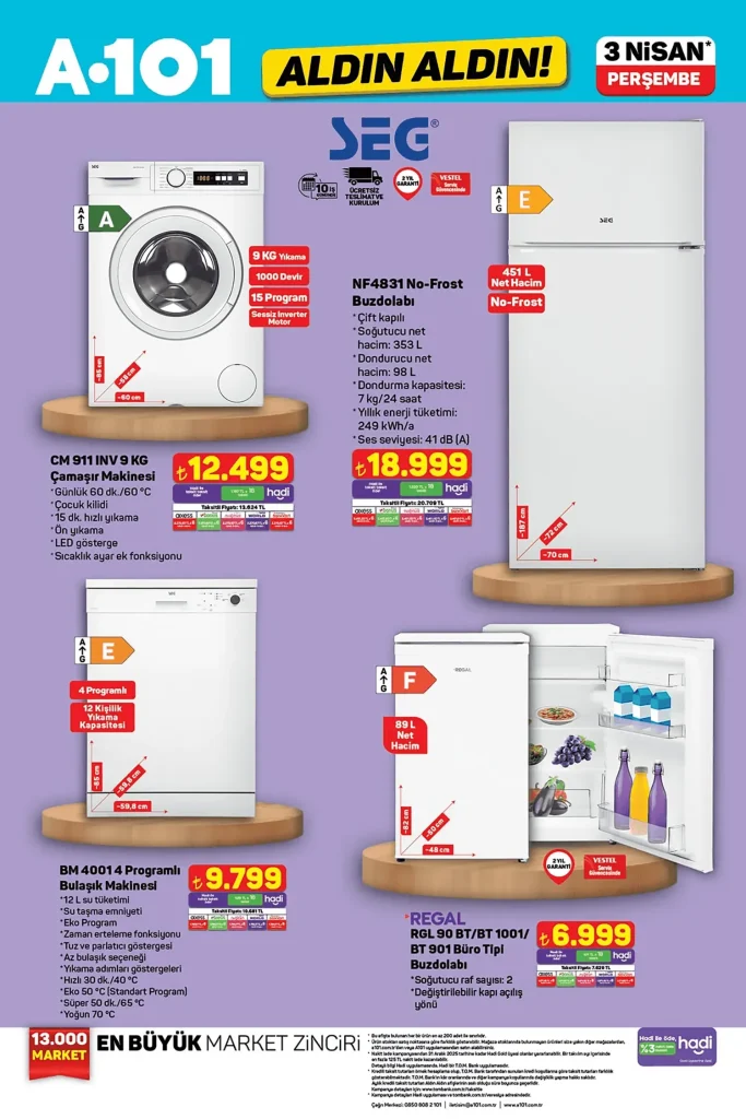 A101’in 3 Nisan’da başlayacak olan kampanyaları, özellikle ay başı alışverişini planlayanlar için büyük avantajlar sunuyor. Katalogda yer alan ürünler, sadece 1 hafta boyunca geçerli olacak şekilde raflarda yerini alacak.