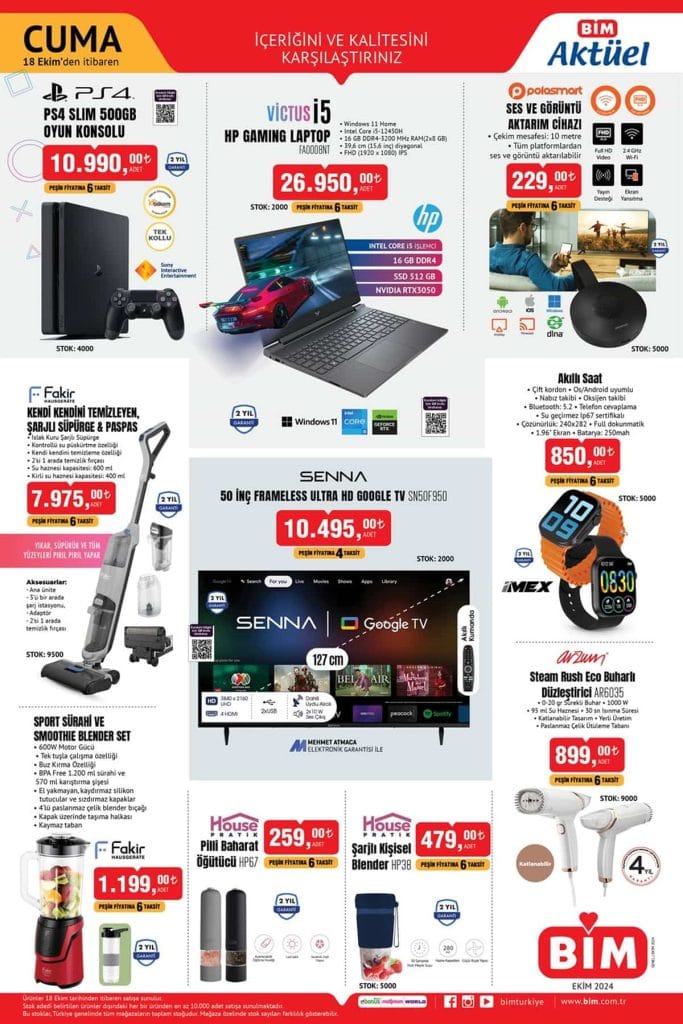 Bim müşterilerinin merakla beklediği 18 Ekim 2024 aktüel kataloğu sonunda duyuruldu. Yeni indirim dönemine ait bu katalogda, birbirinden cazip fırsat ürünleri yer alıyor. 18 Ekim Cuma günü itibarıyla satışa sunulacak ürünler, hem ev ihtiyaçları hem de elektronik ürünlerde avantajlı kampanyalar sunuyor. Bim Market’in resmi internet sitesinde de yayınlanan katalogla birlikte, bu hafta satışa çıkacak ürünler netleşmiş oldu.