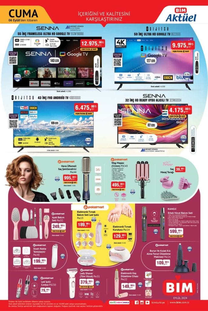 Bim’in 6 Eylül 2024 Cuma günü sunacağı bu fırsatlar, hem elektronik ürünlerden kişisel bakım aletlerine kadar geniş bir yelpazeyi kapsıyor. Kampanya ürünleri, 13 Eylül 2024 Cuma gününe kadar geçerli olacak. Şimdi, bu harika fırsatları kaçırmamak için Bim Market’e uğramanın tam zamanı!