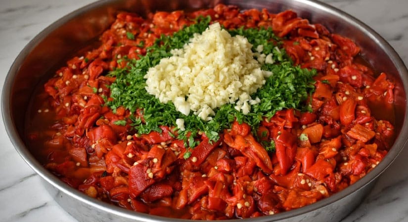 Biberleri közledikten sonra tepsiye koyun peşet geçirin buhar sayesinde kabuklarını daha kolay soyarsınız !! Bütün malzemeleri katışrırın 1 saat bekleyin içinde tuz erisin bütün lezzetler birbirine geçsin !! Sonrasında tadına bakın gerekirse biraz daha tuz ilavesi yapabilirsiniz !! Kavanozları sıkıca kapattıktan sonra tencereye koyun 10 dk kaynatın ki vakumlansın.